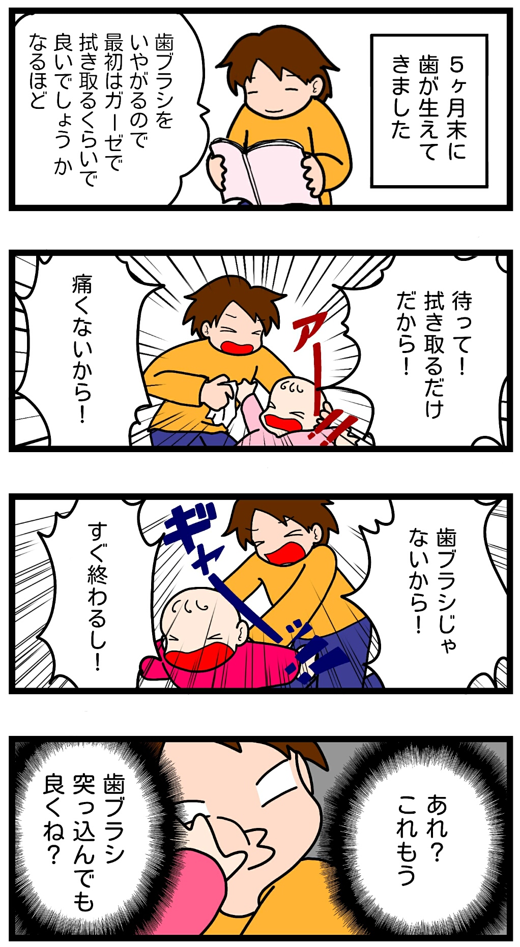 はみがきのこと ① 2018年10月26日 育児書によって変わってくるかと思いますが口の中の異物感を嫌がるとか生えたてをゴシゴシ磨くと傷つくとか色々書いてあるじゃないですか頑張ってガーゼで拭き取ろうとしましたが無理でしたね…1本生えきったあたりで歯ブラシにした気がします傷つかないように磨けていたかはわからないけど今も虫歯は無いので大丈夫だったんでしょう(′∀`) 「はみがき」カテゴリの最新記事 タグ :#乳歯#歯磨き < 前の記事次の記事 > コメント コメントフォーム 名前 コメント 評価する リセット リセット 顔 星 投稿する 情報を記憶
