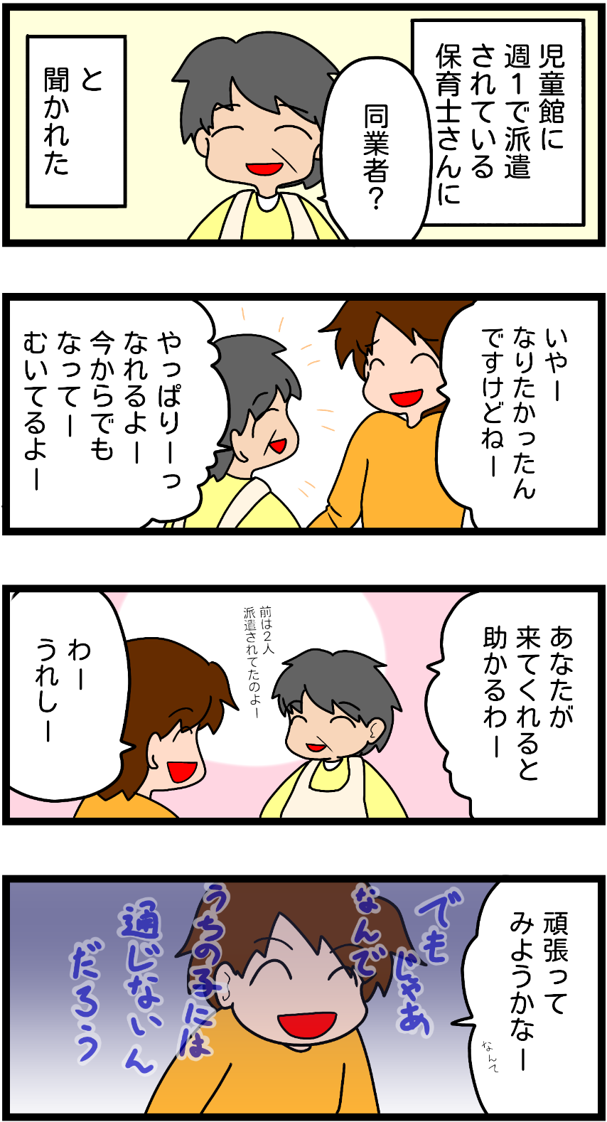 「私の話です、私はずっと保育士さんになりたいと思っていました。