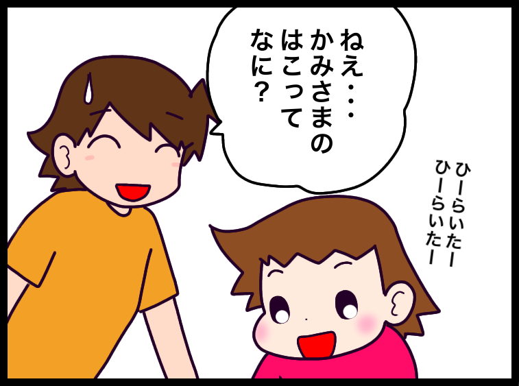 何か神判がくだるのかと思った 2020年05月17日 「ひーらいたーひーらいたーかみさまのはこがひーらいたー」ずっとこの繰り返しなんです(^_^;)コワイあれか、パンドラの箱かなんか?幼稚園が教会付属だったから、そういう替え歌があるのかと思ったけど自分で考えたらしいです…。え、なんか啓示うけたの?神の子なの?コワイからその歌はやめてほしい…😭♡♥♡♥♡♥♡♥♡♥♧♥♡♥♡♥♡♥♡♠♡♥♡自閉症スペクトラムと診断されるまで最初の不安健診様子見を止めた日気持ちの変化発達相談小児心理更新の励みになるので応援のひと押しをぜひお願いしますにほんブログ村人気ブログランキング 「6歳後半」カテゴリの最新記事 タグ :#自閉症スペクトラム#発達障害#童謡#ひらいたひらいた#神様#替え歌#コワイ#絵日記 < 前の記事次の記事 > コメント コメントフォーム 名前 コメント 評価する リセット リセット 顔 星 投稿する 情報を記憶