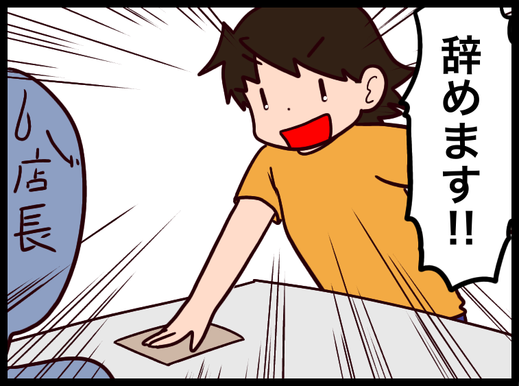 気持ちがグイグイ出てたんで、とにかくさっさと辞めてやると言う思いで即辞表を書いて提出しました。