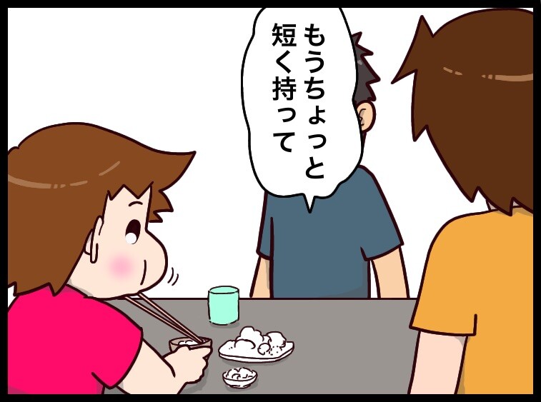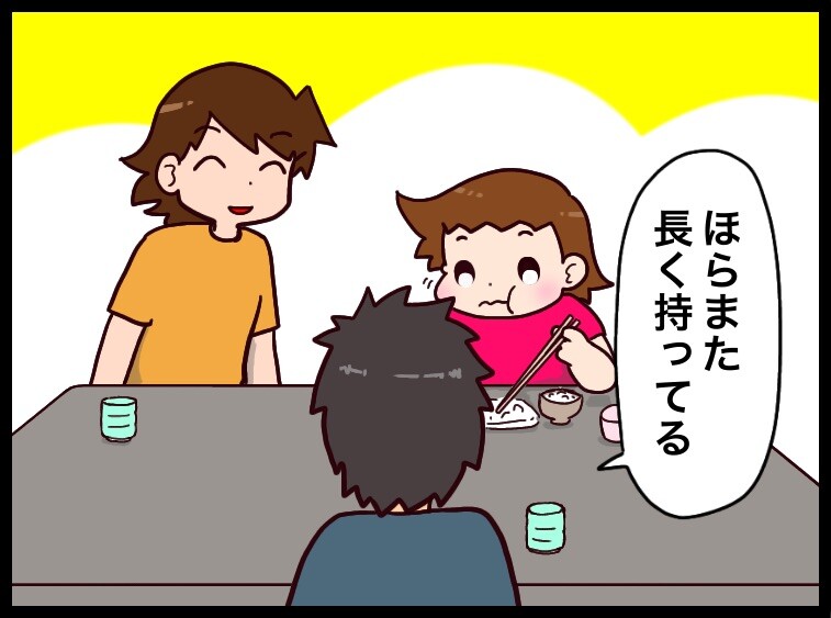 そこでわかったんですけどお箸をだいぶ長く持つんですよ娘。