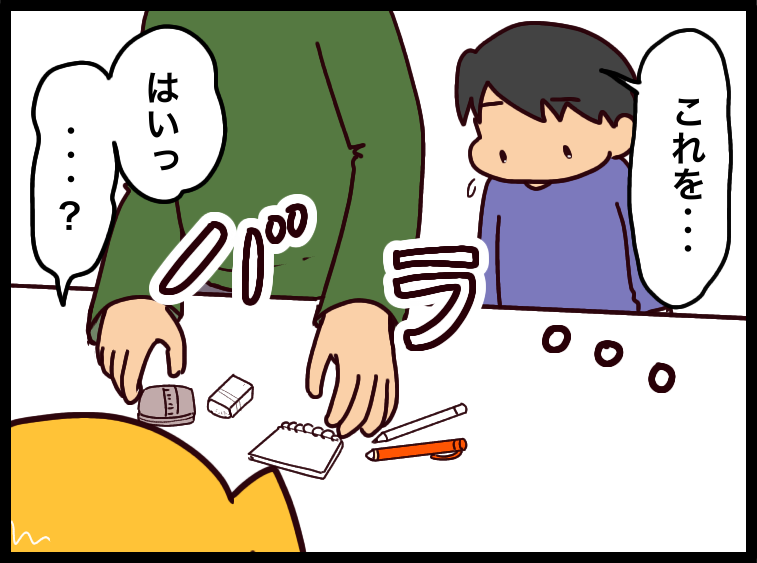 子どもが万引きしたら親はどうするか2 ① 2020年12月19日 前回までのは一旦は終わりましたが また違うお話。お客さんかなと思ったら、お子さんが盗ったものを戻しに来たお父さんでした💦お父さんに限らず、お母さんでもやっぱりお子さんが盗った商品を持って支払いに来られる方はけっこう多かったです。やっぱり背中を見せるならこう言う真摯な対応ですよね。続きます。※すみません前回の親子と服の色が似通ってて同じ人だと思われたらしいのでちょっと修正しました。♡♥♡♥♡♥♡♥♡♥♧♥♡♥♡♥♡♥♡♠♡♥♡自閉症スペクトラムと診断されるまで最初の不安健診様子見を止めた日気持ちの変化発達相談小児心理子どもの万引きも大人の万引きも多かったですにほんブログ村人気ブログランキング 「コンビニの話」カテゴリの最新記事 タグ :#絵日記#コンビニ#万引き#親#子ども#謝罪 < 前の記事次の記事 > コメント コメントフォーム 名前 コメント 評価する リセット リセット 顔 星 投稿する 情報を記憶