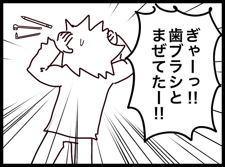 歯ブラシ複数使って歯磨きしてるんで、ガサっと掴んで片付けたのが災いした…。