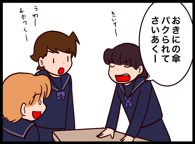 そもそもみんなやってるならパクれる傘が傘立てに置いてないとめっちゃ説明しました。