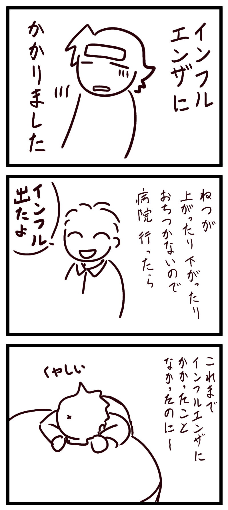 インフルエンザでした。 2024年01月12日 更新止まっててすみません。インフルエンザにかかりました。熱もだけど咳がとにかくつらいですね。もう少し大人しくしてます…。ここらへんを押してもらえると嬉しいですにほんブログ村人気ブログランキング 「日常」カテゴリの最新記事 タグ :#絵日記#インフルエンザ < 前の記事次の記事 >